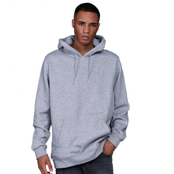 A male model wearing a grey oversize hoodie with front pouch pocket against a white background. Build your Brand Basic Oversize Hoodie - BB006